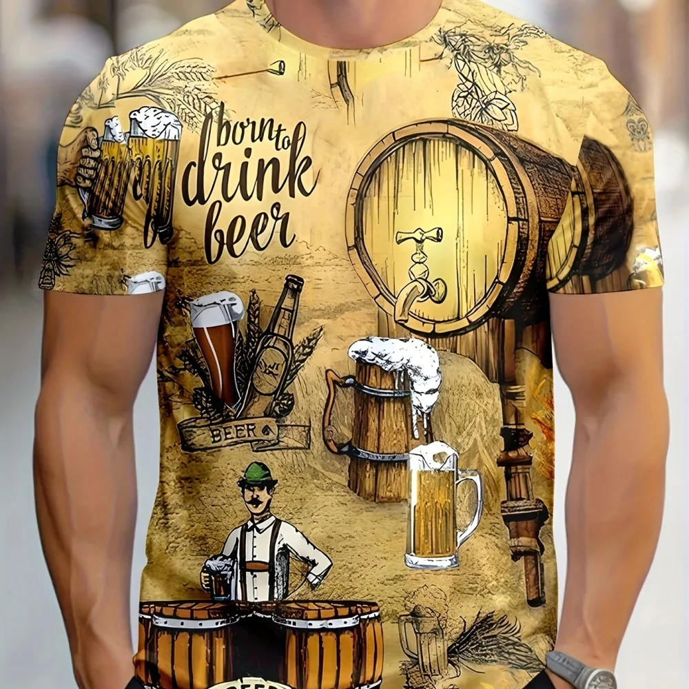 Fashion Men’s T-Shirt 3D Beer Print Short Sleeve T-Shirts Summer Man Designer Clothes O-Neck Short Sleeve Tee Tops Man T Shirts